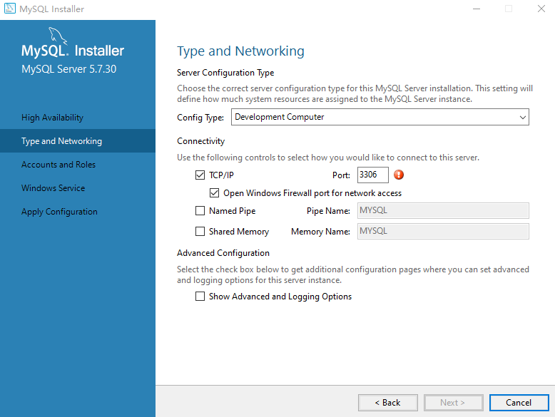 6.单击右边的 "MySQL Server 5.7.30 - X64",然后点击右下角不起眼的蓝色小字 “Advanced Options”